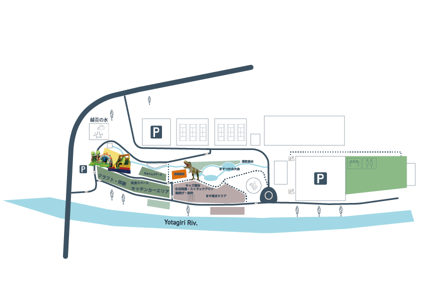 普段見ることのできない恐竜と写真撮影をしたり、昨年も大好評だった化石発掘体験をお楽しみいただけます。またおいしい屋台やキッチンカー、ますつかみ大会を企画しております。