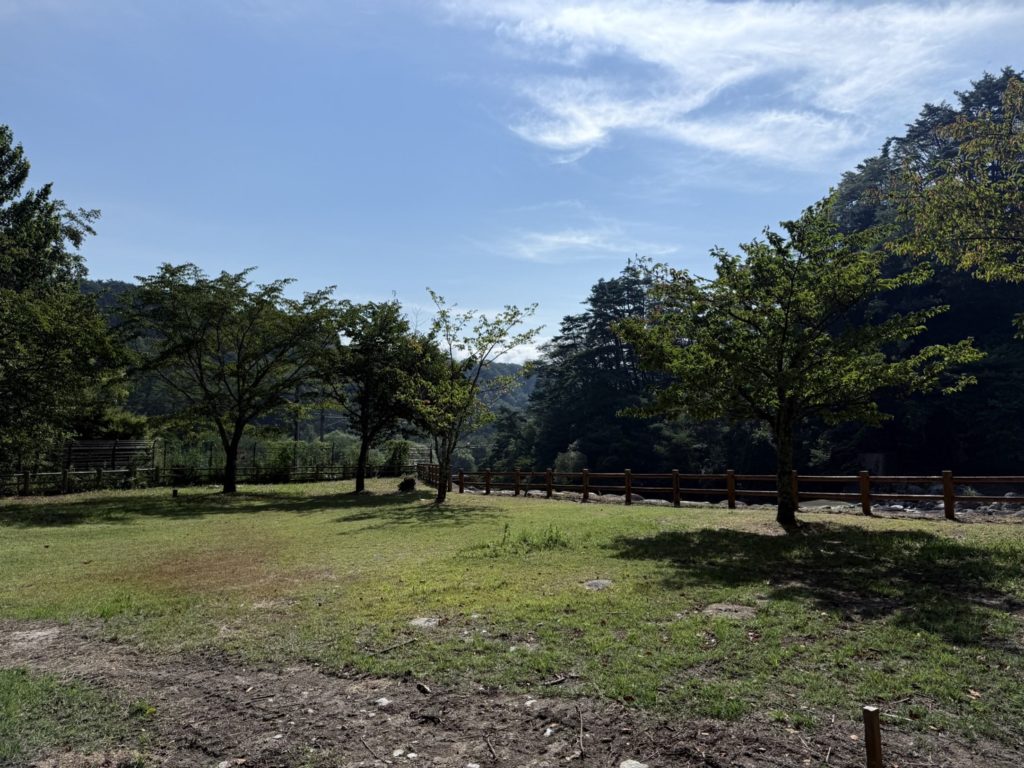 乗り入れ可能オートサイト。受付から車で10分と離れたエリアになります。距離はありますが与田切エリアとまた違った雰囲気の川沿いキャンプサイトです。
